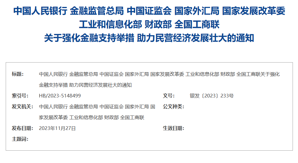為深入貫徹黨的二十大精神和中央金融工作會議要求,全面落實《中共中央國務院關于促進民營經(jīng)濟發(fā)展壯大的意見》,堅持“兩個毫不動搖”,引導金融機構樹立“一視同仁”理念,持續(xù)加強民營企業(yè)金融服務,努力做到金融對民營經(jīng)濟的支持與民營經(jīng)濟對經(jīng)濟社會發(fā)展的貢獻相適應,現(xiàn)就有關事宜通知如下。