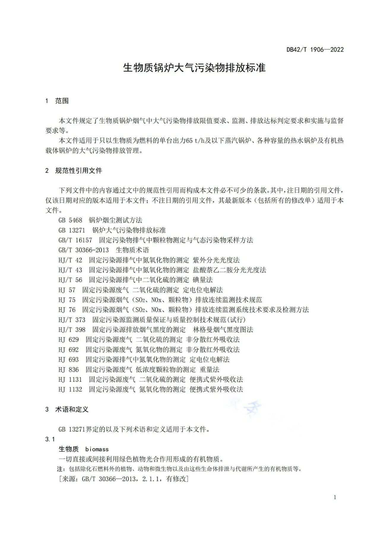 湖北的生物質(zhì)鍋爐注意了,新標(biāo)準(zhǔn)《生物質(zhì)鍋爐大氣污染物排放標(biāo)準(zhǔn)》(DB42/T1906-2022)2024年1月1日起執(zhí)行!