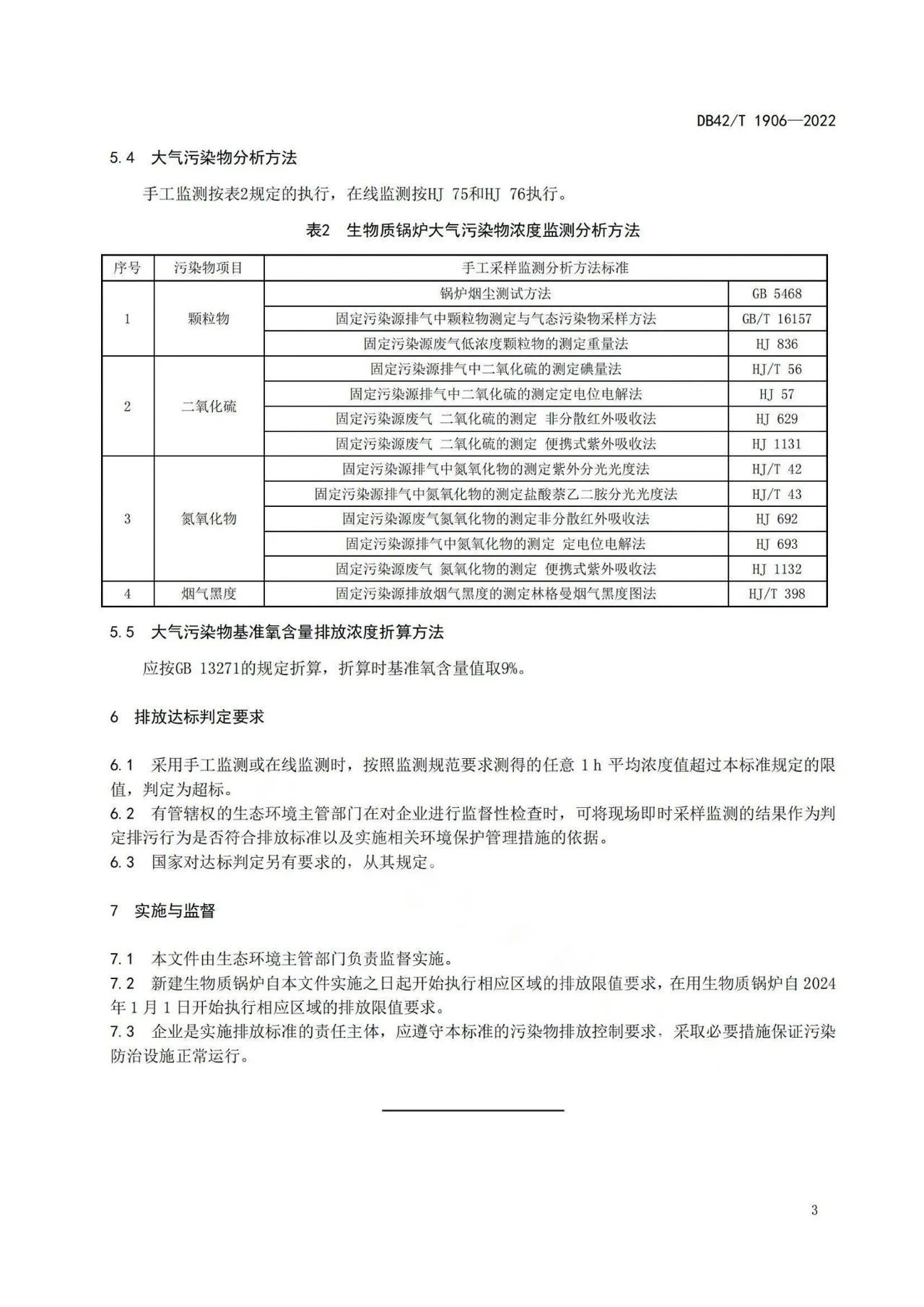 《生物質(zhì)鍋爐大氣污染物排放標(biāo)準(zhǔn)》(DB42/T1906-2022)是由湖北省生態(tài)環(huán)境廳和湖北省市場(chǎng)監(jiān)督管理局于2022年8月31日聯(lián)合發(fā)布的,對(duì)于新建生物質(zhì)鍋爐是從2022年10月31日開(kāi)始執(zhí)行相應(yīng)區(qū)域的排放限值要求,而在用生物質(zhì)鍋爐,則是從2024年1月1日起開(kāi)始執(zhí)行。